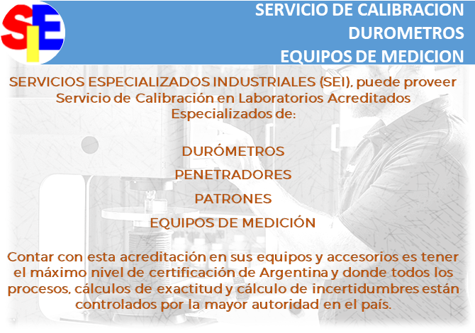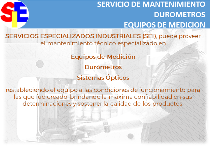 Servicios Especializados Industriales posee la más completa línea de durómetros de banco, portátiles y especiales, junto con sus accesorios, además de brindar los Servicios de Calibración y Mantenimiento, en Laboratorio ó en la Propiedad del Cliente, de los equipos, penetradores y patrones con emisión de Certificados según la Norma ISO 17025.